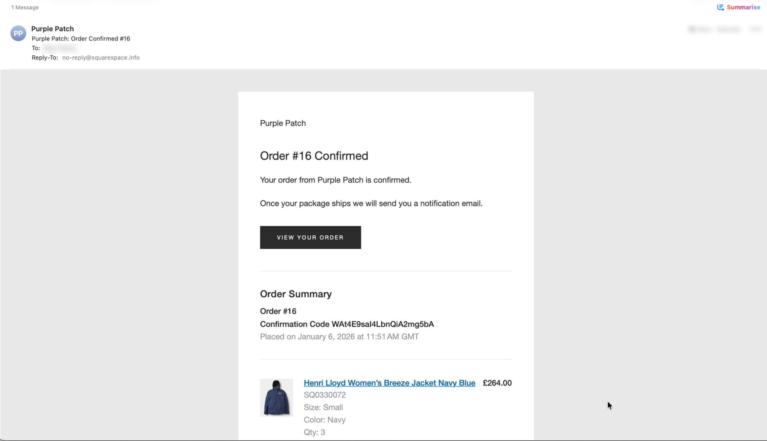 Finalising: Click Purchase to submit the order. You will see a confirmation screen with your order number.
